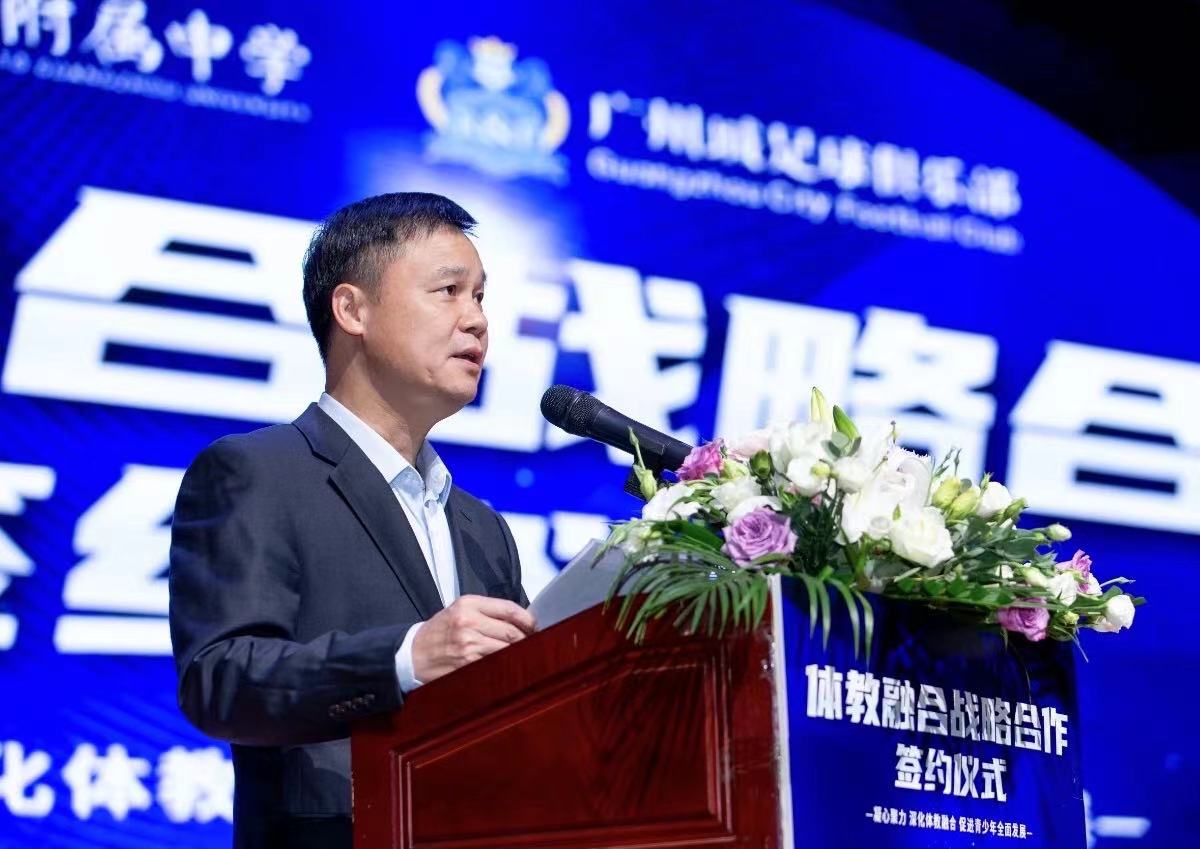 广州大学附属中学与广州城足球俱乐部签订体教融合战略合作协议。