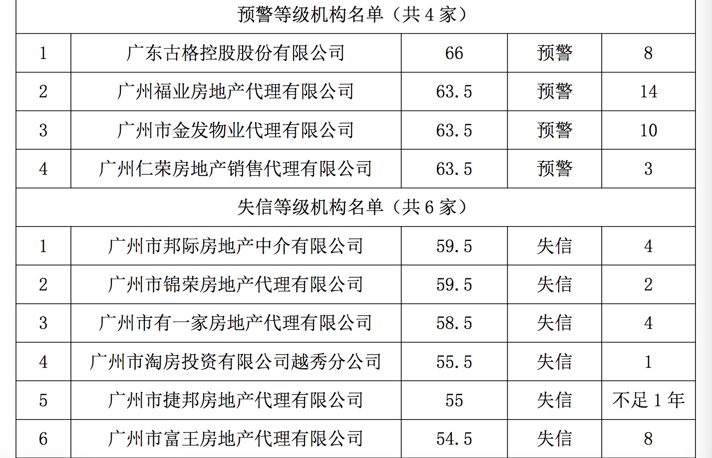 为方便消费者对房地产中介服务机构和从业人员的信用有更直观的了解,协会按照《信用评分评级管理办法》将信用等级划分为“优质”“良好”“诚信”“暂定诚信”“预警”“失信”等六个级别。