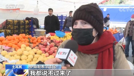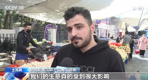 伊斯坦布尔农产品集市商贩:高物价把老百姓都吓跑了,再加上疫情下,来集市的人本来就少了,我们的生意真的受到很大影响。