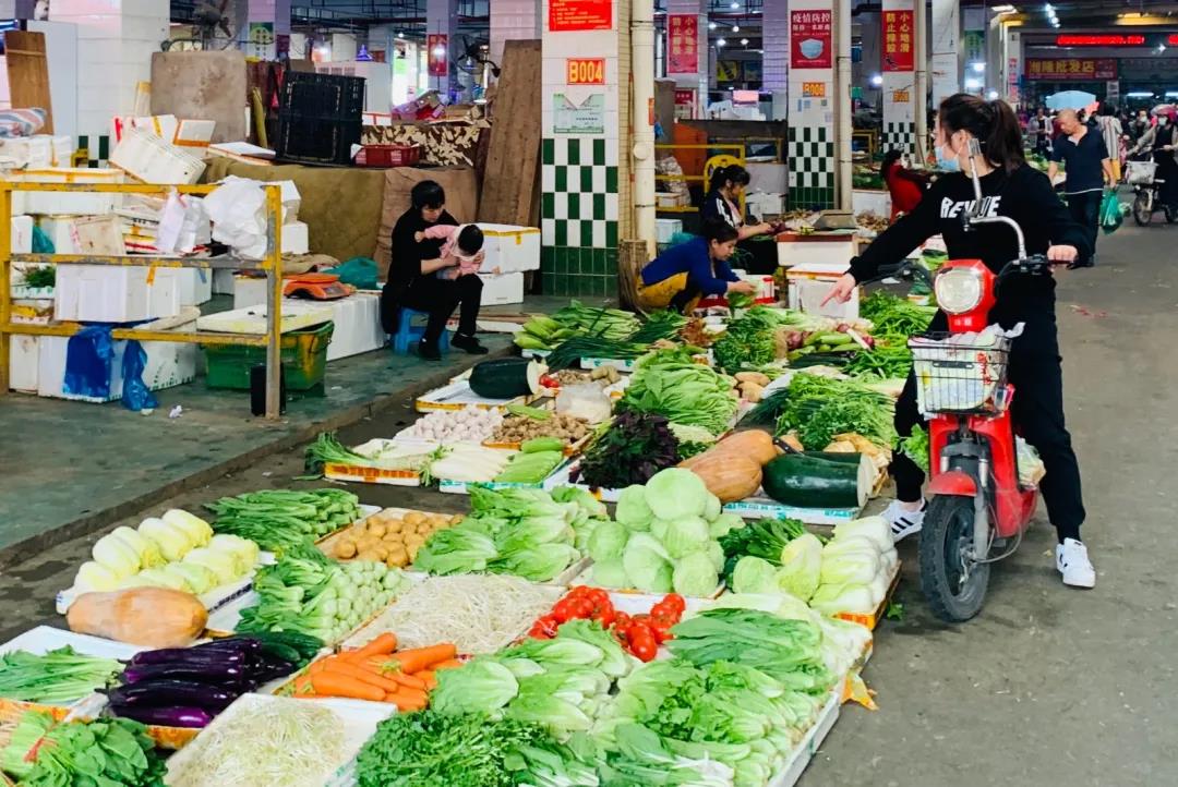 市场已有多年历史,里面的档口既做批发也做零售。起初,市场内的档口主要以水果、蔬菜类居多,渐渐地增加了肉类、海鲜档口,市场人流量也逐步提升。日常生活中,不仅附近的居民群众来此买菜,周边大小餐饮店的老板也会来这里采购。