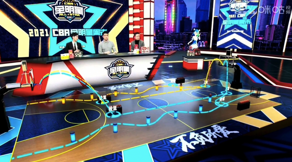 此外,本次全明星周末特别定制的虚拟演播室是另一大看点,MR混合现实技术的使用让虚拟场景与实景相结合达到无缝切换。在4K实时直播中植入战术分析,详尽分析球队战术打法,让球迷在观看直播之余,能够更加立体化、数据化的了解球队战术。如名宿刘炜、胡卫东等人通过虚拟技术“瞬移”到演播室,仿佛真实的坐在现场一般,打破空间的壁垒,在虚拟和现实间完成自由出入,实现双场景穿越联动。