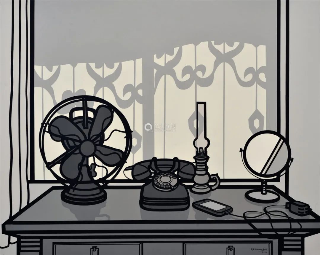 中国具有代表性的波普艺术家之一的李邦耀为这次展览带来了作品《物种起源》系列,《物种起源》是李邦耀2005年后对物品符号研究时期的代表系列绘画,其系列选取了上个世纪50至70年代典型日常消费形象的自行车、缝纫机、煤油灯、纪念章等物品作为研究对象,使用广告手法和明艳的单色背景,商品之“物”作为主体在画面中呈现,真实的秩序变成了景观符号的再现和表象。一如李邦耀的自述,他的另一幅作品《室内》系列绘画以场景式构图,在耐人寻味的空间中,勾勒出家庭生活纷繁的物品符号,从而管窥家庭政治经济学中所蕴含的文化意义。在物品使用价值、交换价值变为象征价值、符号价值的今时,我们如何摆脱消费主义的幽灵,如何抵抗布尔乔亚迷魂药的诱惑?李邦耀通过对“物”的符号研究,产生了一种对话机制,生成中间介质,“物”回到了日常状态,使得“隐性话语”得以回归,所指向非常之“物”。