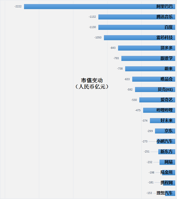 《每日经济新闻》根据Wind数据统计后发现,市值前20的中概股在过去一周累计蒸发了1873亿美元(约合12251亿元人民币),堪称罕见。
