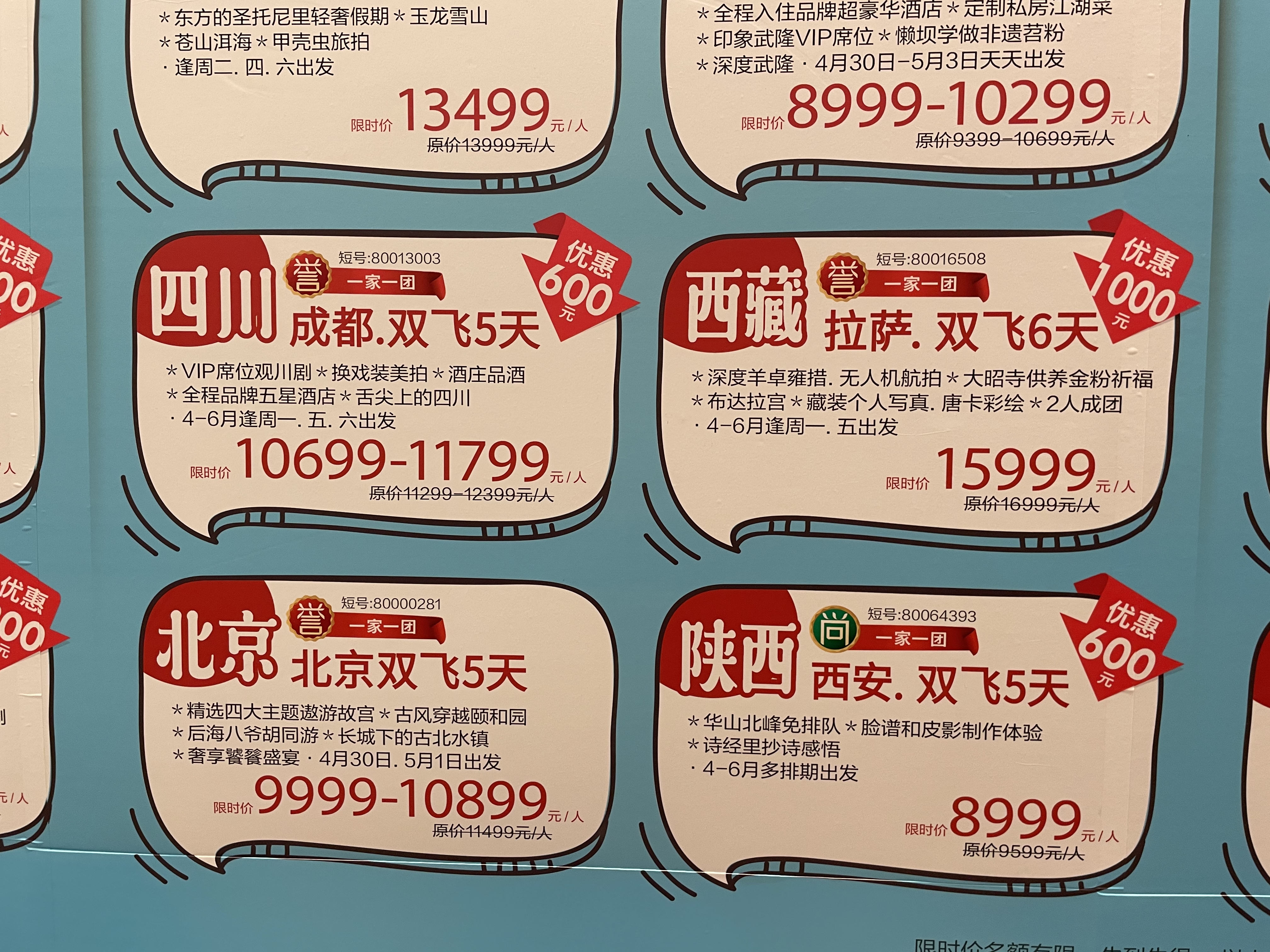 广州前往北京、西藏、云南、四川等目的地产品的5〜6天双飞深度高端产品,在五一假期出现了售价过万的现象。此外,前往广西、海南、陕西等地出现了不少高端产品。