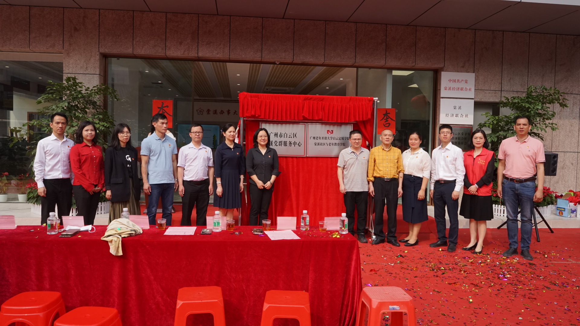 3月28日,在广州市白云区棠景街棠溪党群服务中心,广州老年开放大学白云定锐学院棠溪社区与老年教育学院举行揭牌仪式。