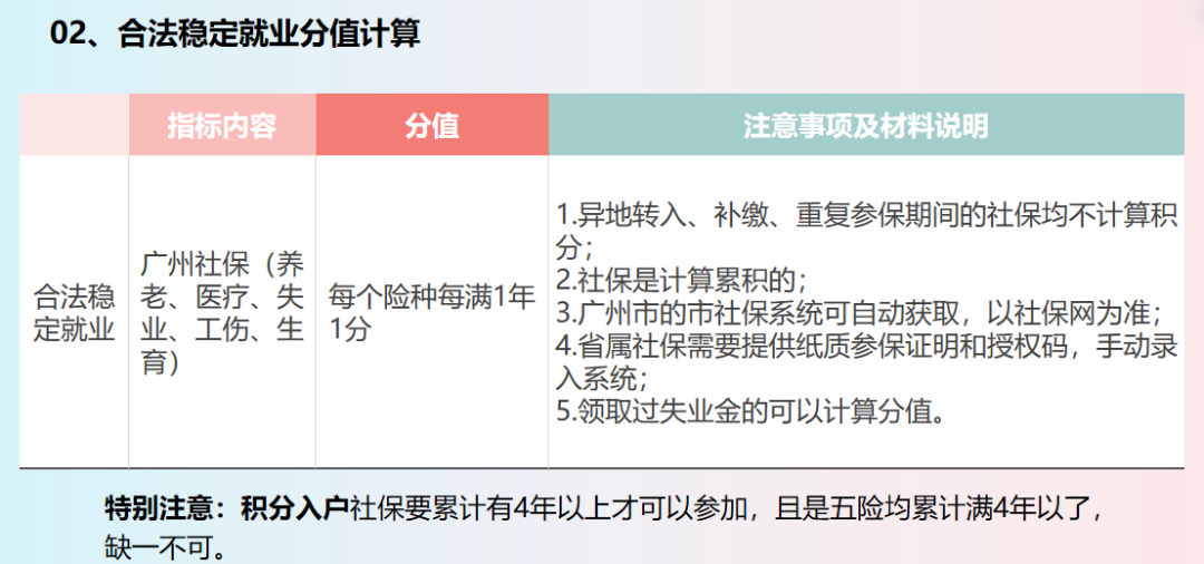 2.申请人在广州市办理《广东省居住证》连续满一年,现在越秀区有合法稳定职业,在越秀区依法缴纳社会保险(其中一个险种)累计满一年以上且在缴。