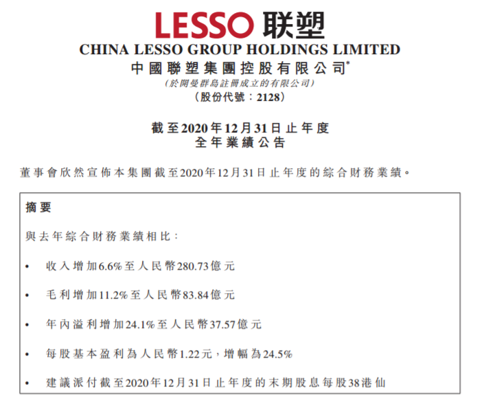 总部位于佛山市顺德区龙江镇的大型建材家居产业集团中国联塑,该公司去年年报在昨日晚上正式“放榜”。
