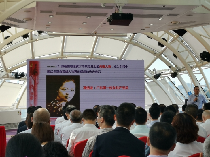 3月30日,首次参加“珠江红色讲堂”的学员,乘船从大沙头码头出发,在游船课堂上聆听了广州市委党校副教授孙宜芳博士的党史教育课程,随后上岸前往太古仓参观学习。
