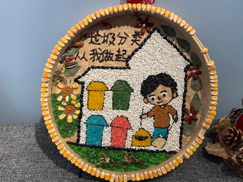 一次性纸杯、散落的玉米粒、用过的塑料吸管……生活中的“废弃物”变废为宝,成为一件件手工艺品。