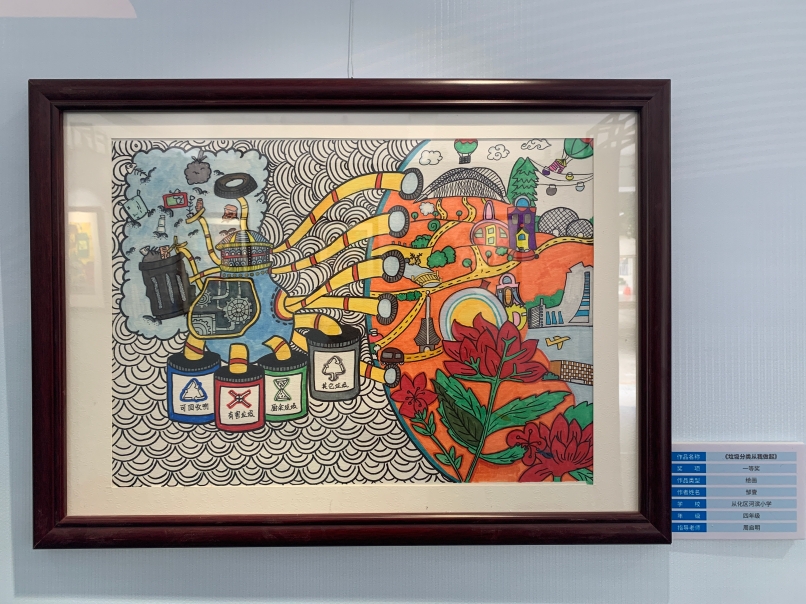 本次参展作品来自2020年12月从化区“生态从化· 分类同行”绘画及手工艺比赛,该区60所中小学学生投稿超过500件作品,经多环节评审后,100余件获奖作品脱颖而出。这批获奖作品将在包括流溪中学在内的全区七所中小学进行巡回展览。