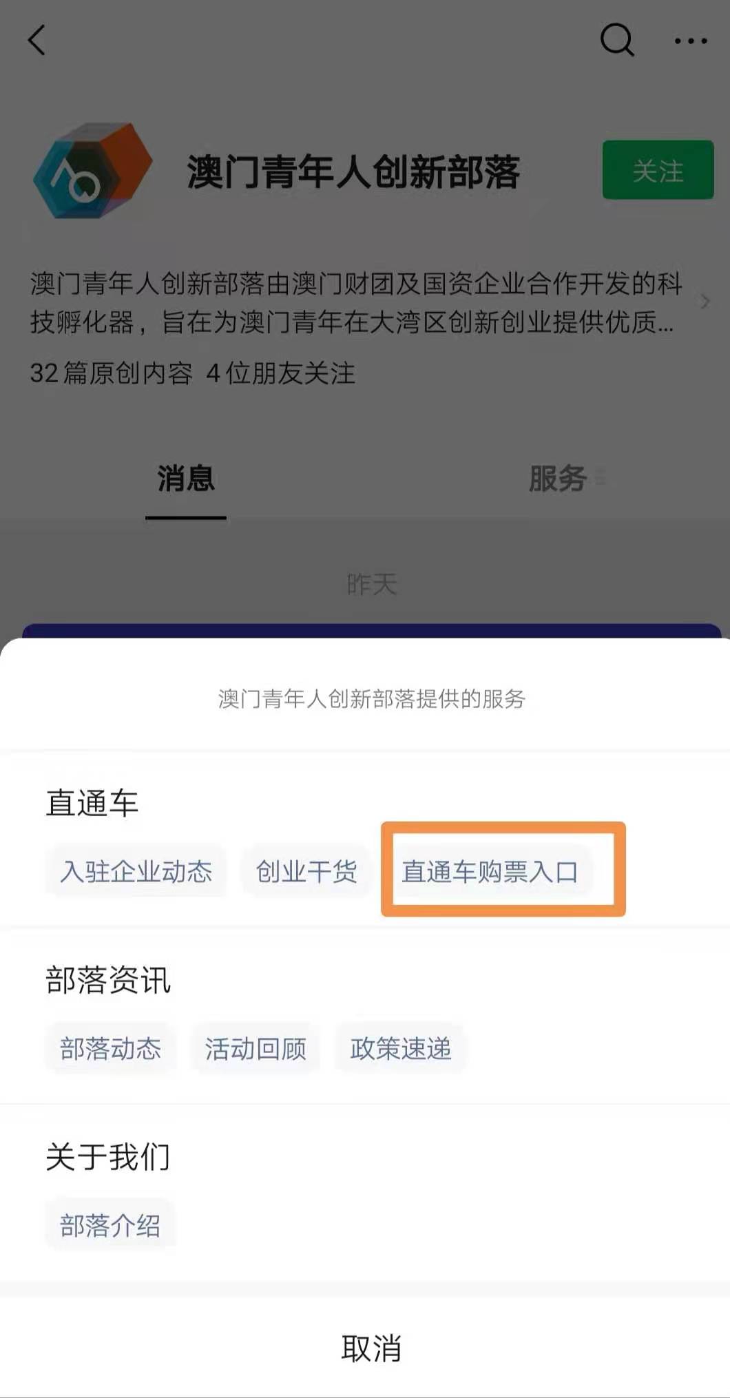 第一步:關注「澳門青年人創新部落」公眾號
