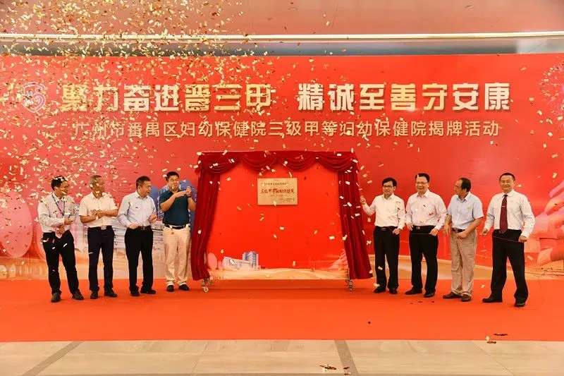 与会领导嘉宾为番禺区妇幼保健院“三级甲等妇幼保健院”揭牌,标志着番禺区医疗卫生事业的发展又迈上了一个新台阶,成为区妇幼保健院发展史上一个重要里程碑。