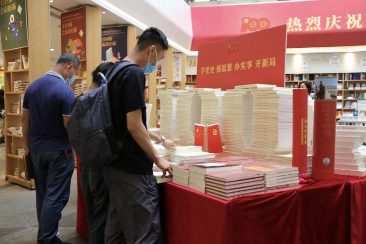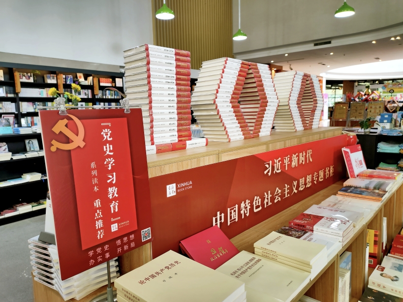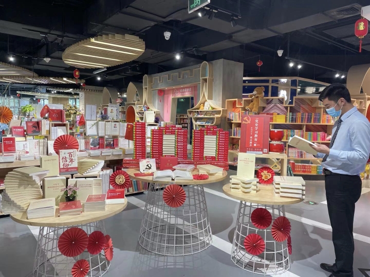 广州新华出版发行集团介绍,其旗下各大实体门店均设立了党史学习教育专题重点推荐展台及书架,庆祝“中国共产党成立100周年主题图书联展”如火如荼,上百种党史类图书满足不同群体读者的求知欲。各实体网店里,统一开展了“党史学习教育和庆祝中国共产党成立100周年主题图书联展”活动。
