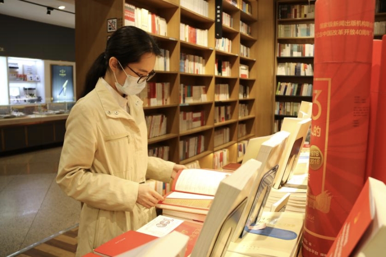 走进繁华商圈中的广州购书中心天河店,一字排开的“红色书架”组成了一道亮眼文化景观。位于一楼大堂主通道位置的主展台及书墙通过开面陈列,向读者推荐今年重点学习读物《论中国共产党历史》《毛泽东邓小平江泽民 胡锦涛关于中国共产党历史论述摘编》《中国共产党简史》《习近平新时代中国特色社会主义思想学习问答》等。全店各类党政图书品种多达150余种,合计2000余册,吸引众多读者流连。