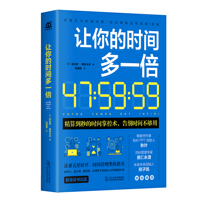 近日,由新浪读书推出的《让你的时间多一倍》重磅上市。本书从时间的概念和做时间管理的初衷出发,明确时间管理的终极目的并非尽可能做更多的事,而是通过合理的时间分类、规划、安排,去延长“给自己的时间”长度,让自己有更多时间去做自己真正想做的事。