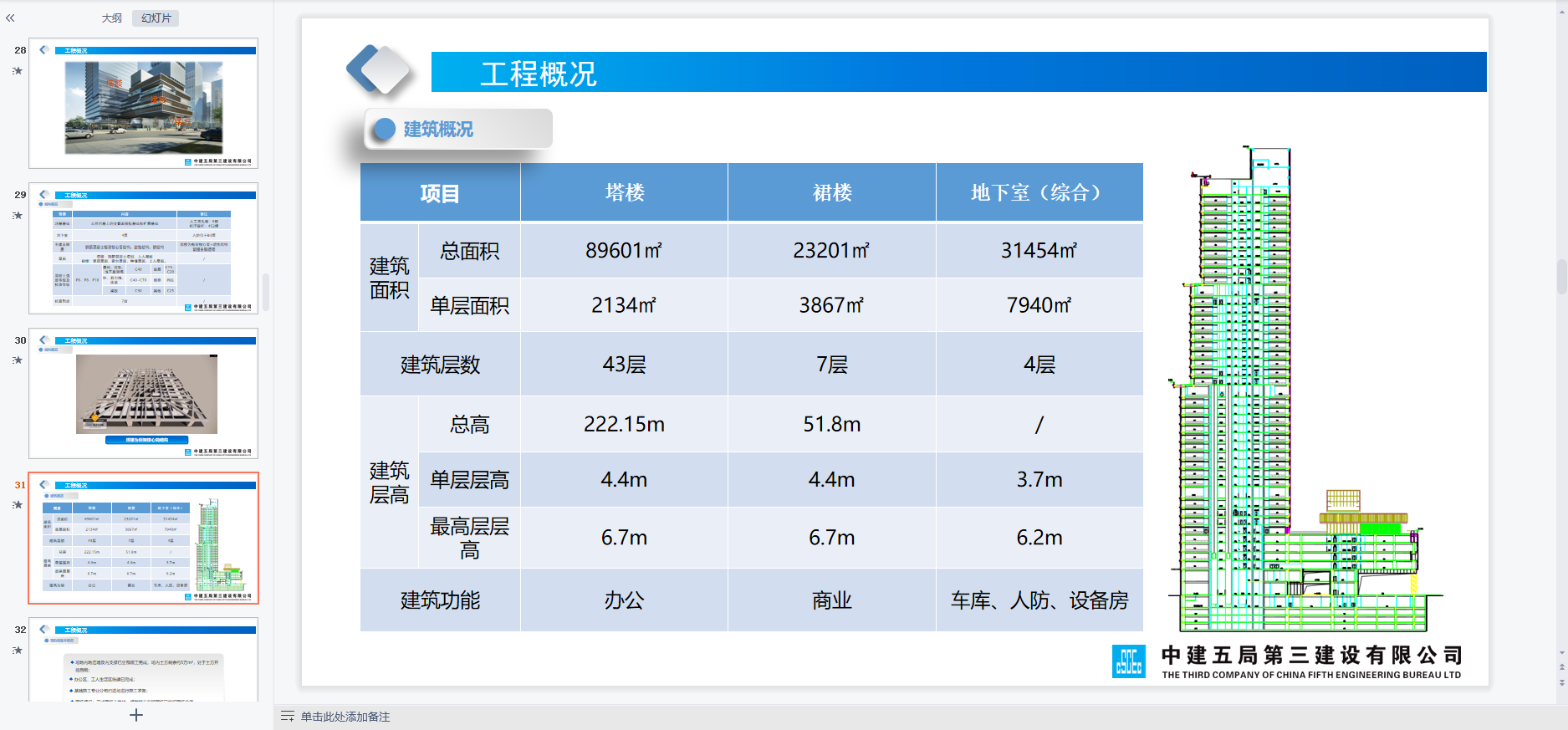 欢聚大厦项目占地面积 9958平方米,总建筑面积14.4万平方米,主塔楼高222.15米,裙楼高51.80米。共有地上43层与地下4层。结构类型为钢筋混凝土框架+型钢混凝土核心筒(埋设钢柱)+钢桁架梁+Y型钢柱。
