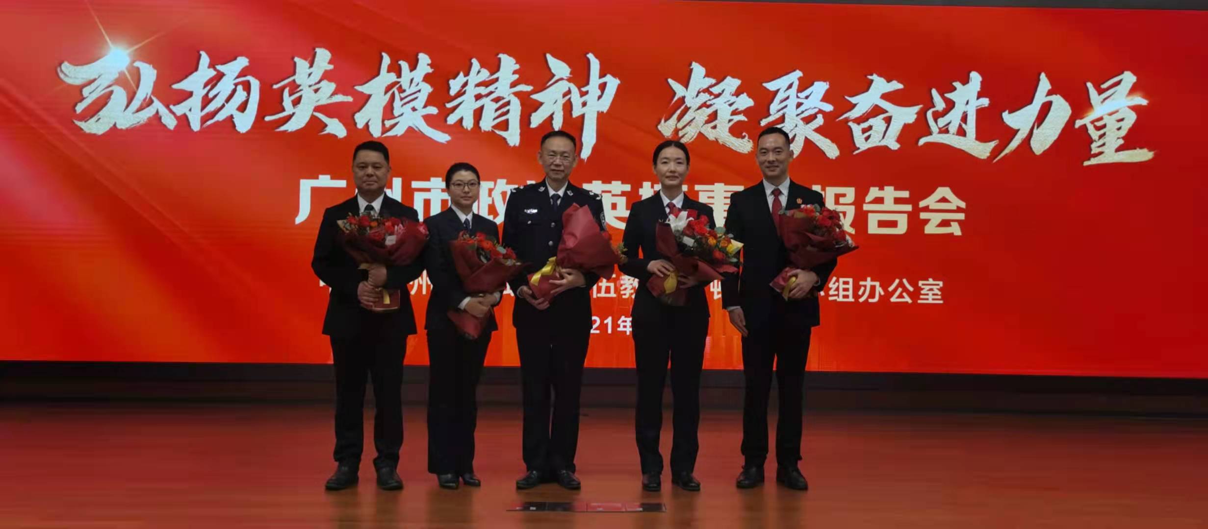 4月2日上午,广州市政法英模事迹报告会隆重举行,5位广州市政法英雄模范代表分别登上广州市委会议厅讲台,宣讲自己与战友们在政法战线的奋斗历程和先进事迹。