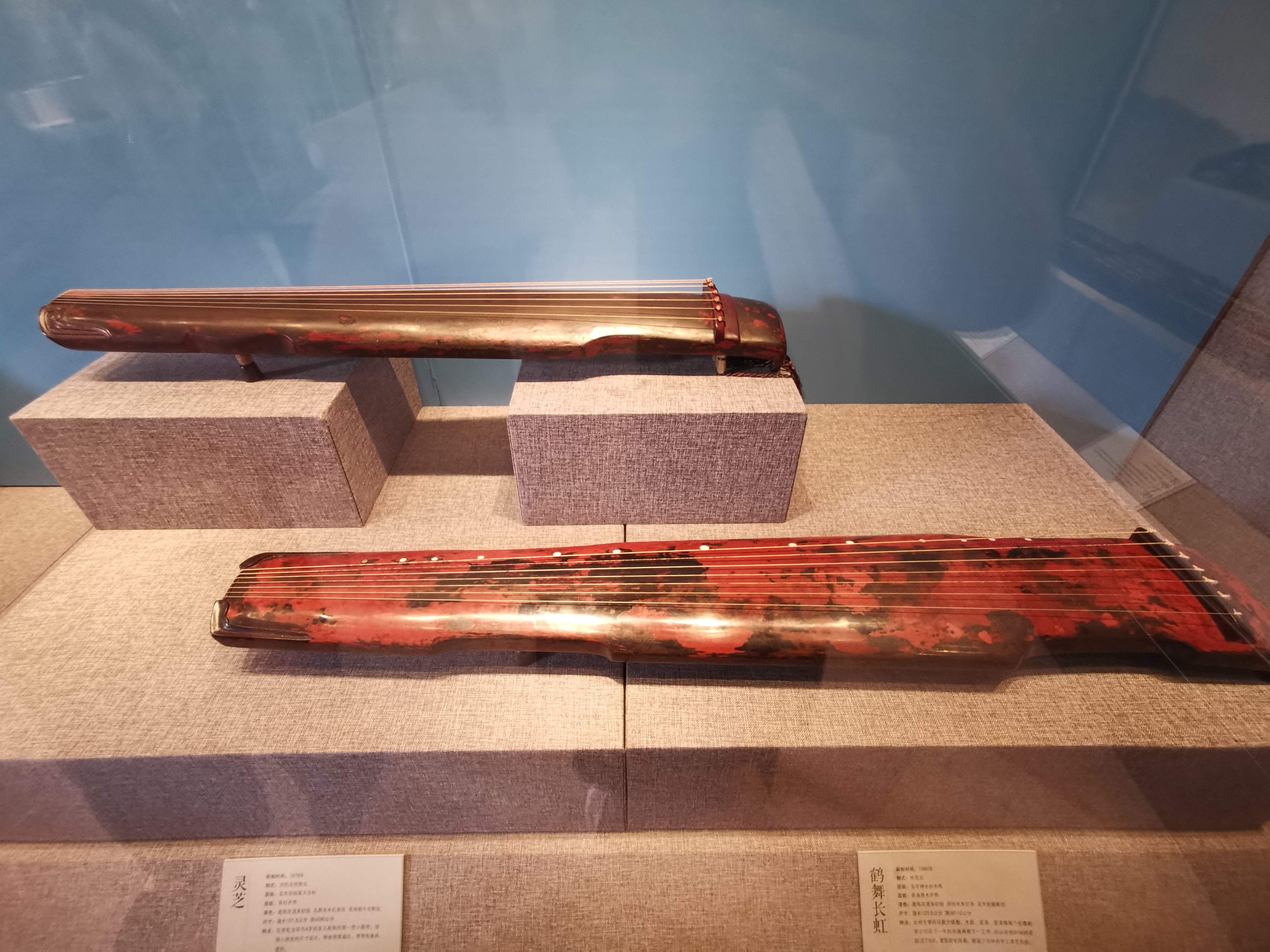 本次展览展出的是“古琴艺术(岭南派)”广东省非物质文化遗产代表性传承人区君虹、“古琴艺术(岭南派)”广州市非物质文化遗产代表性传承人区宏山修复、斫制的古琴。