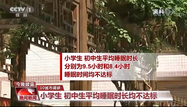 教育部这次委托有关研究机构对10省份开展的中小学生学业负担监测结果显示,小学生、初中生平均睡眠时长为分别为9.5小时和8.4小时,睡眠时间均不达标。