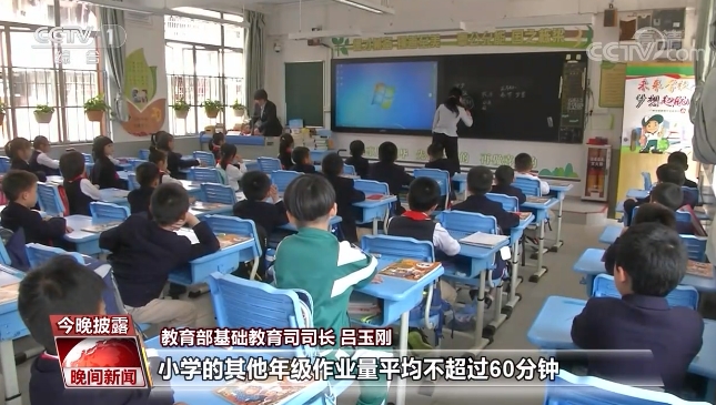 教育部基础教育司司长 吕玉刚:小学一、二年级不留书面作业;小学的其他年级,作业量平均不超过60分钟;初中每天平均不超过90分钟。避免留一些机械性、重复性的作业,更不应该留一些惩罚性的作业。