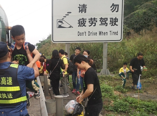 经了解,该大巴车从清远开往英德,车上乘坐的有学生及其家长,共30余人。由于乘客中男女老少都有,人员情绪波动较大,路政员将滞留在应急车道的乘客全部转移到护栏外的安全区域后,耐心安抚乘客情绪,并提醒大人看管好自己的小孩,以免小孩误入车道。