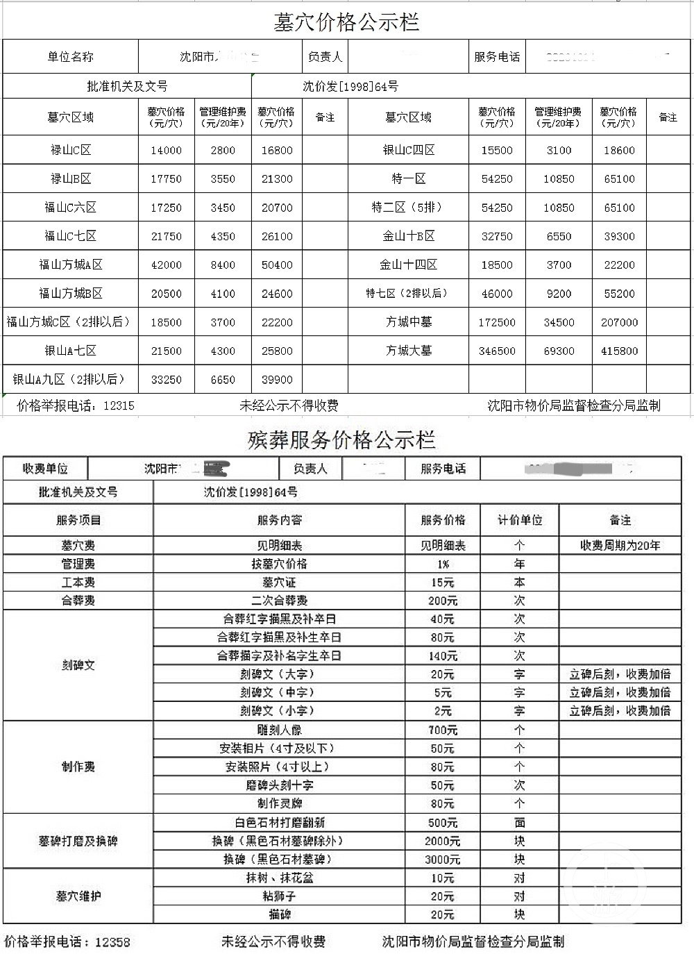 ▲沈阳市某公墓在网站上发布价格公示。图片来源/网站截图