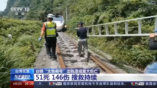 总台记者 陈轩石:台铁的灾害应变中心在记者会上,对这一次的意外做了一个相当详细的说明。截止到目前为止,确认有51人死亡,当中包括了49名旅客,还有146人受伤。记者会上相关负责官员表示,随着后续的搜进,其实不排除死亡数字还会增加的可能,不排除后续可能还会发现罹难者的遗体。