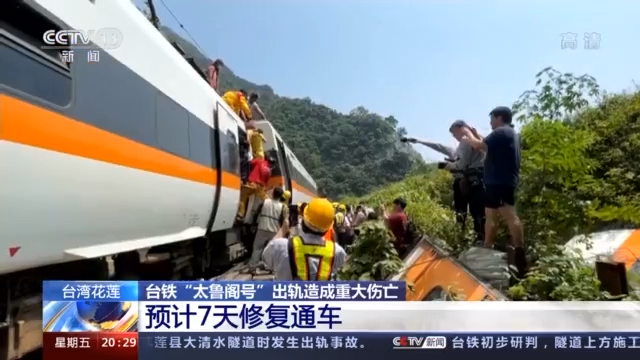 总台记者 陈轩石:当局预估至少需要一个礼拜,才能够把损坏的铁路清理干净、修复完成,正常通车大概需要7天。