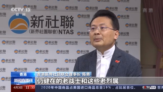 香港新界社團聯會理事長 陳勇:新界社團聯會,他們的始創者很多都是當年東江縱隊港九獨立大隊(成員),就是我們中國共產黨帶領的游擊隊,他們的後代或者他們影響的新界民眾和青壯年,他們組成了愛國的聯盟。現在我們看到很多仍健在的老戰士和這些老烈屬,還有他們的後代繼承了這種傳承,繼續在社區裏邊宣講抗戰的歷史,同時宣講他們熱血裏邊對國家民族的感情,然後不管香港遇到什麼情況,他們對國家的感情始終不變,影響了千千萬萬的香港的一代又一代。