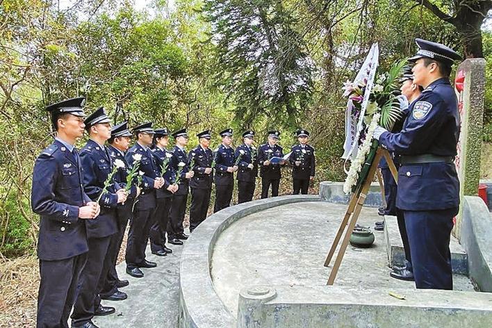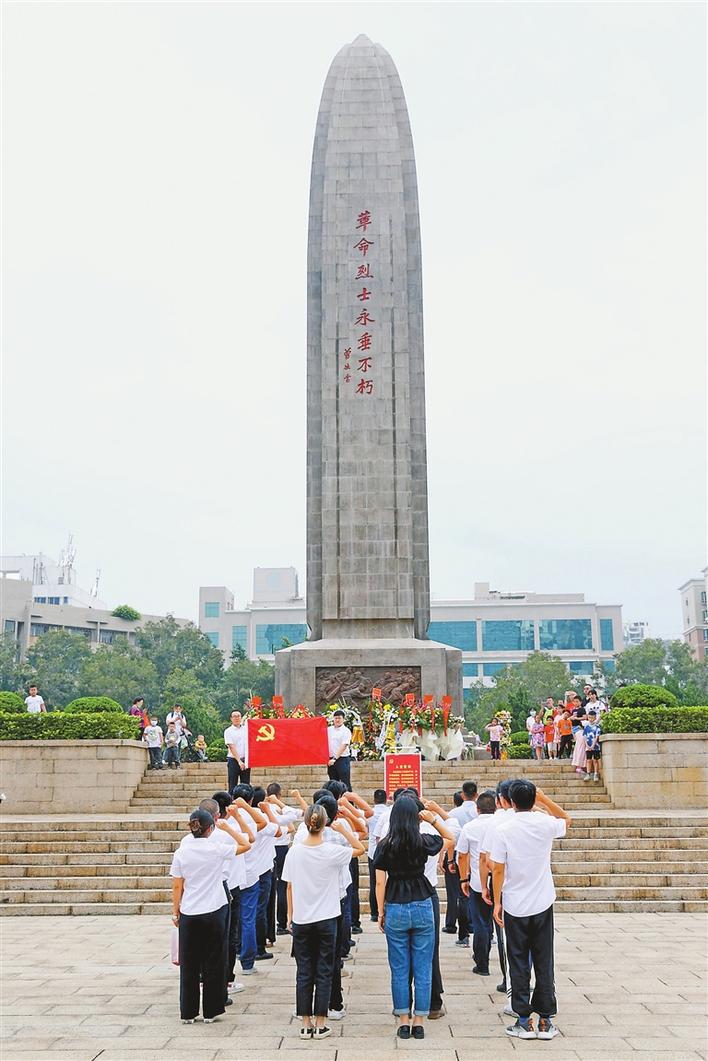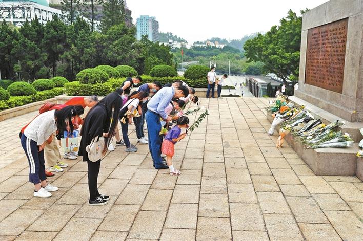 在深圳革命烈士陵园,市民向烈士纪念碑鞠躬。