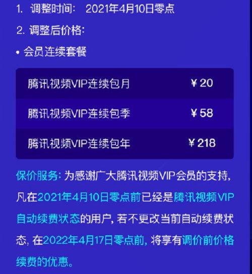 同时,腾讯视频也称,在4月10日前已是自动续费状态的用户,将在4月17日后才执行新的价格体系。
