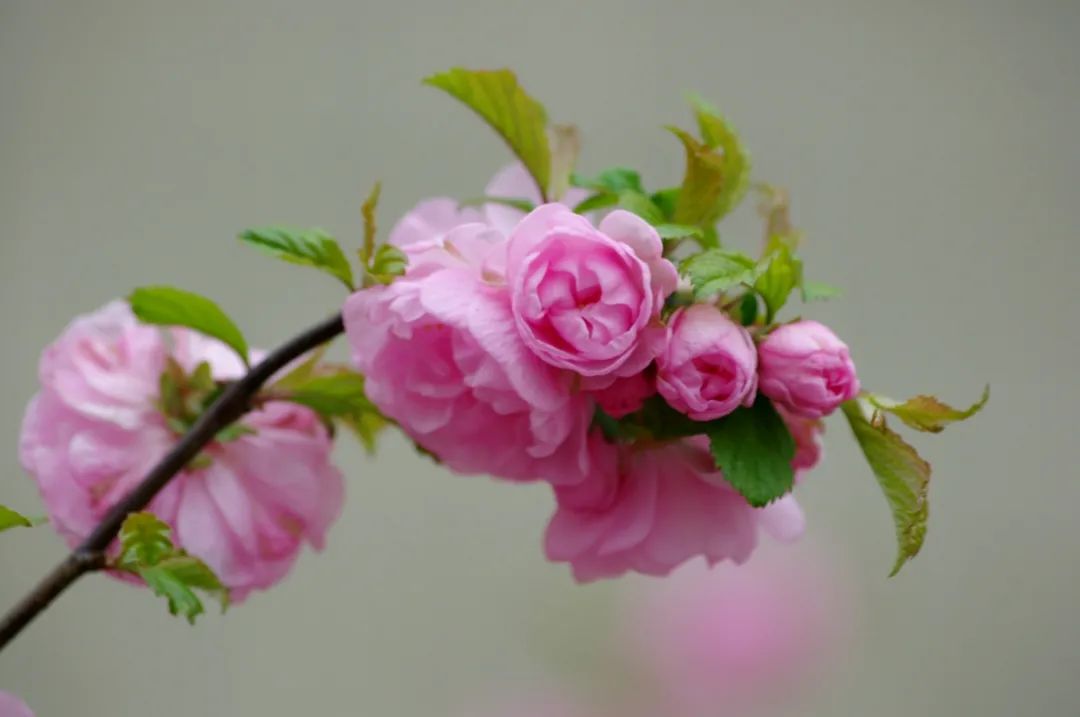 2.重瓣榆叶梅最显著的特征是,它的叶片有很多纹路,像是榆树的叶片