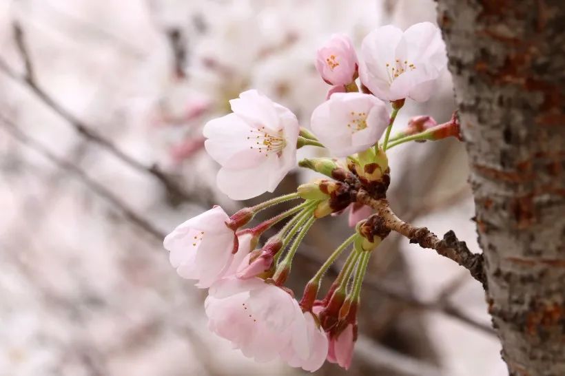 3.先开花后长叶,花期3-4月,花朵粉色或白色