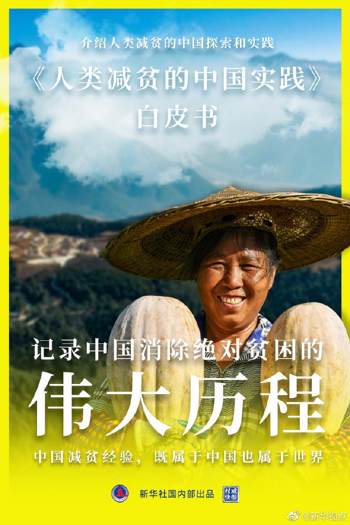 国务院新闻办公室6日发布《人类减贫的中国实践》白皮书,记录中国消除绝对贫困的伟大历程,介绍人类减贫的中国探索和实践,分享中国扶贫脱贫的经验做法。