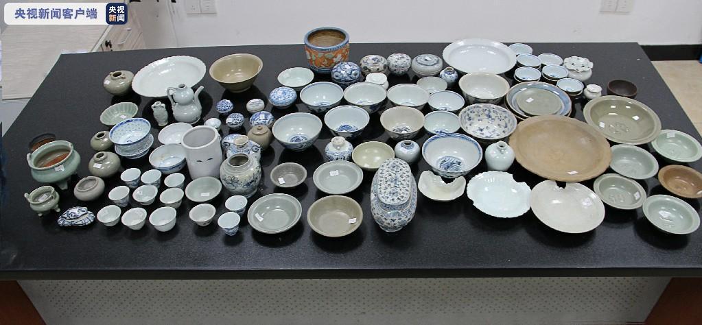 近日经鉴定,该批96件、毛重约27千克的旧碗碟为五代时期的青釉碗、宋代的龙泉窑盘、元代的卵白釉印双鱼纹花口盘、明代的青花花卉纹罐、清代的青花凤纹盘以及民国时期的青花玲珑瓷套碗等,属于文物。目前,涉案文物已作进一步处理。