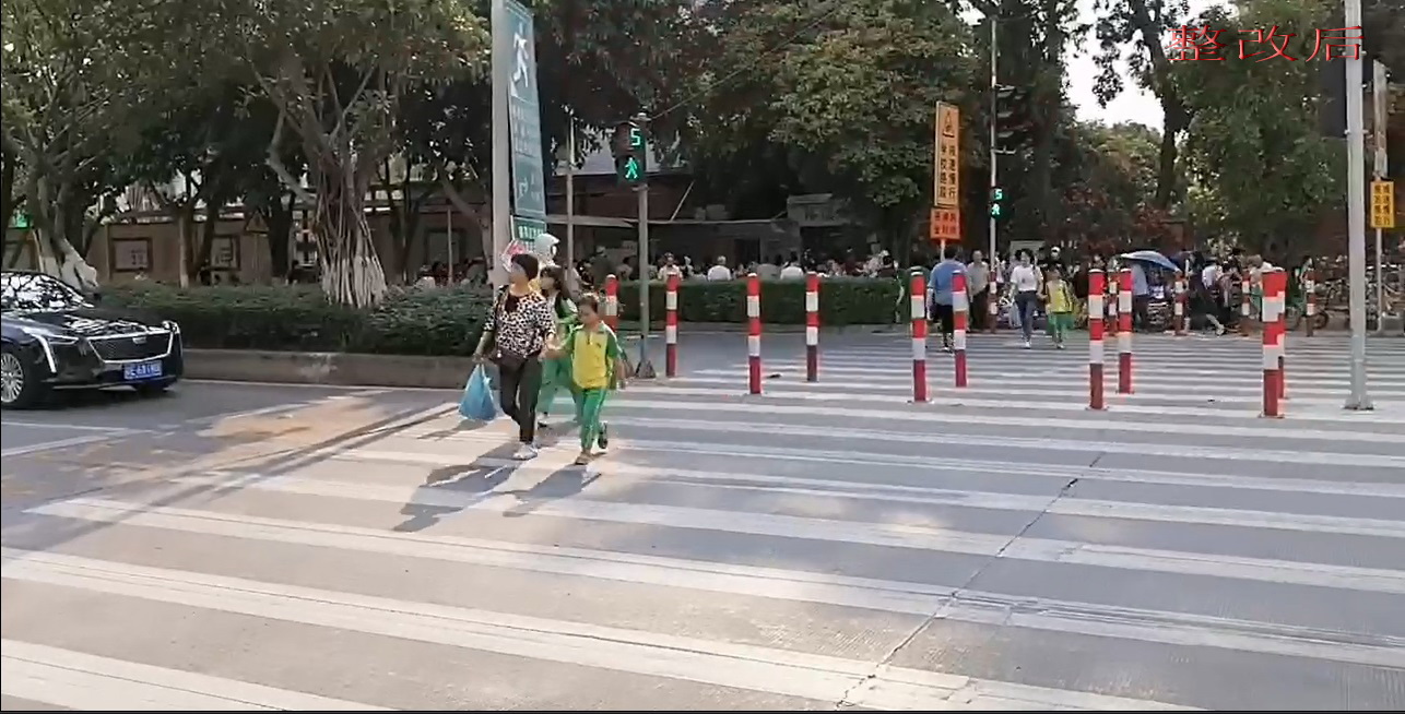 至3月底,如意路与北环路交界路口的交通设施已全部整改完成,现场交通秩序焕然一新,行人、机动车按照红绿灯指示依次通行,学校老师、家长志愿者在上放学高峰时段加强秩序引导和维护,现场交通井然有序。