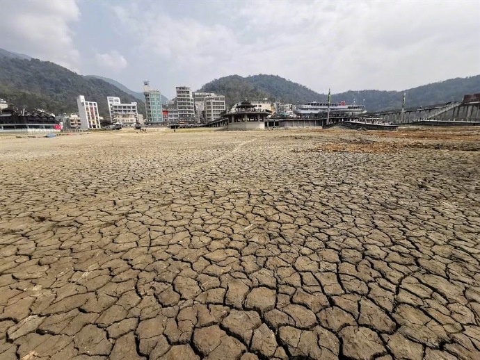 据台湾《中时电子报》报道,一名台湾网友日前在社交平台分享“日月潭伊达邵”的照片,画面可见,干枯的湖底寸草不生,看上去一点水份都没有,土色地面龟裂成细小块状。震撼的画面让不少网友直呼,干旱好可怕。
