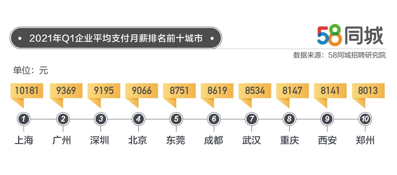 西安招聘需求环比增速最快,上海企业平均支付月薪10181元
