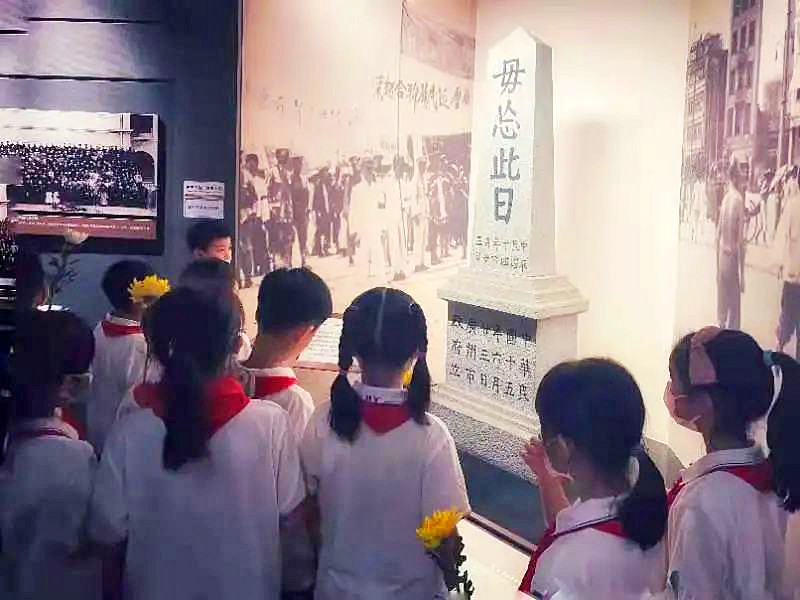跟随着展馆讲解员,同学们穿过广州革命历史博物馆长长的走廊,看到了1839年林则徐在广东虎门将一箱箱鸦片销毁;看到了广州三元里人民痛击英国侵略者留下来的炮台和武器;看到了洋务运动爆发,中法战争、甲午中日战争的惨败,广州起义的坚持;看到了无数革命先烈抛头颅洒热血换来的抗日战争的胜利,迎来了广州的解放。