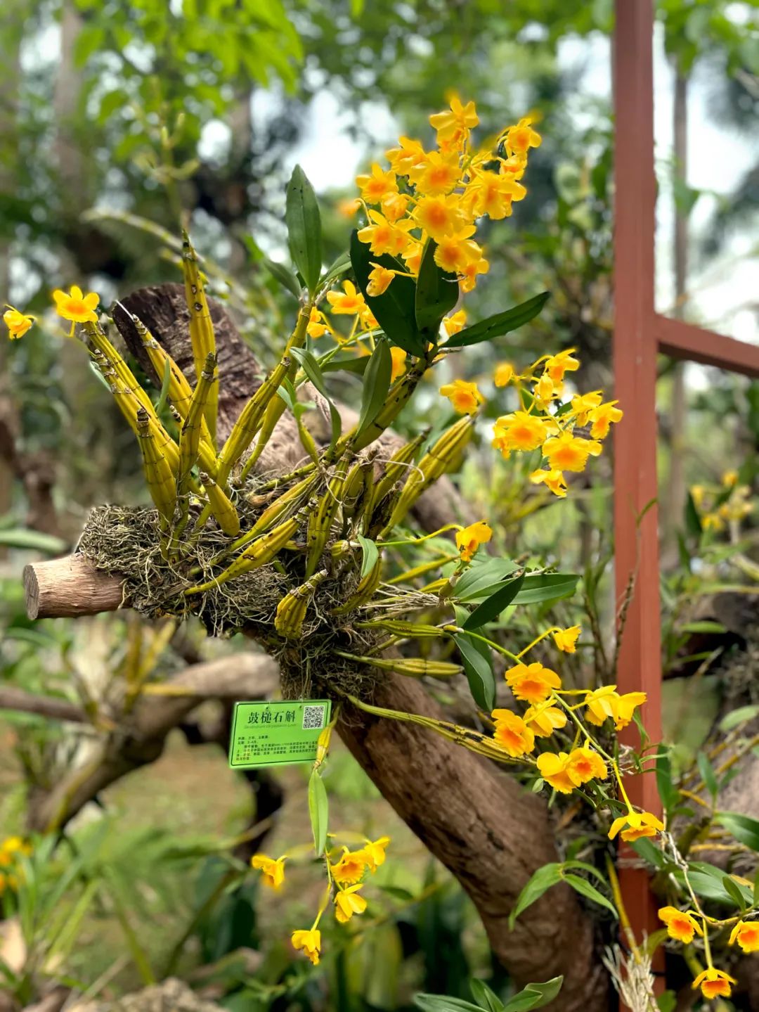 石斛载于《神农本草经》,并被列为上品。石斛为多年生草本植物,生长在热带、亚热带原始森林及相类似的温暖湿润的环境,多附生于大的树干或岩石上。石斛全身上下都是宝,具有排毒养胃润肺、调节阴阳平衡、补益肠胃促进消化、补脾护肝、改善睡眠等功效。石斛本身具有药用价值,部分石斛花同样承袭了石斛本身的功效,用石斛花泡水,能消暑及调节肠胃,同时还可以用来煲汤、做菜、泡酒,味道鲜美可口、营养丰富,成了“舌尖新宠”。石斛花除了可以吃,还具有较高的观赏性。