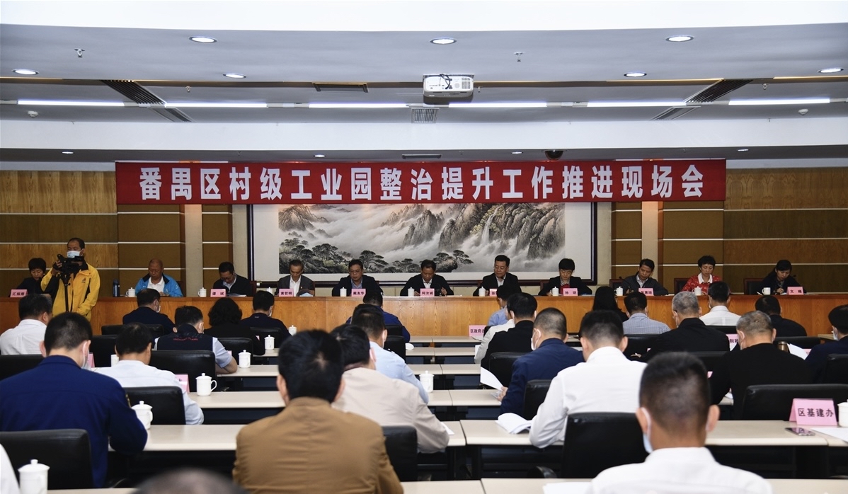 随后,番禺区在区会议中心召开村级工业园整治提升工作推进现场会。会上,番禺区科工商信局汇报全区村级工业园整治提升工作推进情况。钟村街、沙湾街、沙头街汇报村级工业园整治提升工作经验做法。