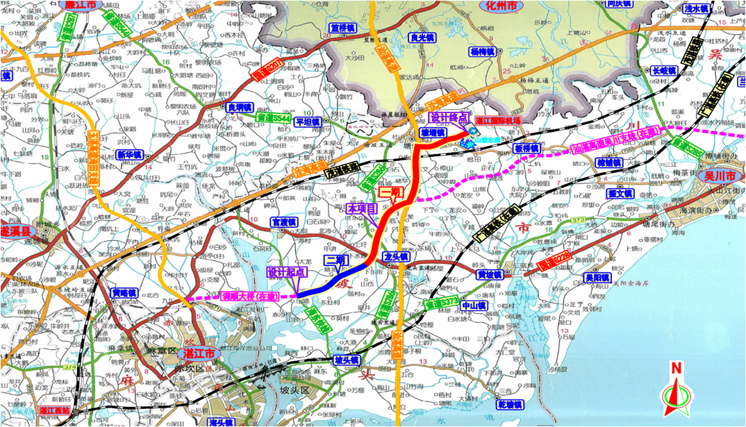 湛江机场高速全长约25公里,采用双向六车道标准,时速120公里。项目是湛江城区通往湛江吴川机场的高速通道,将进一步完善湛江吴川机场集疏运网络,助力湛江市高质量建成省域副中心城市具有重要意义。