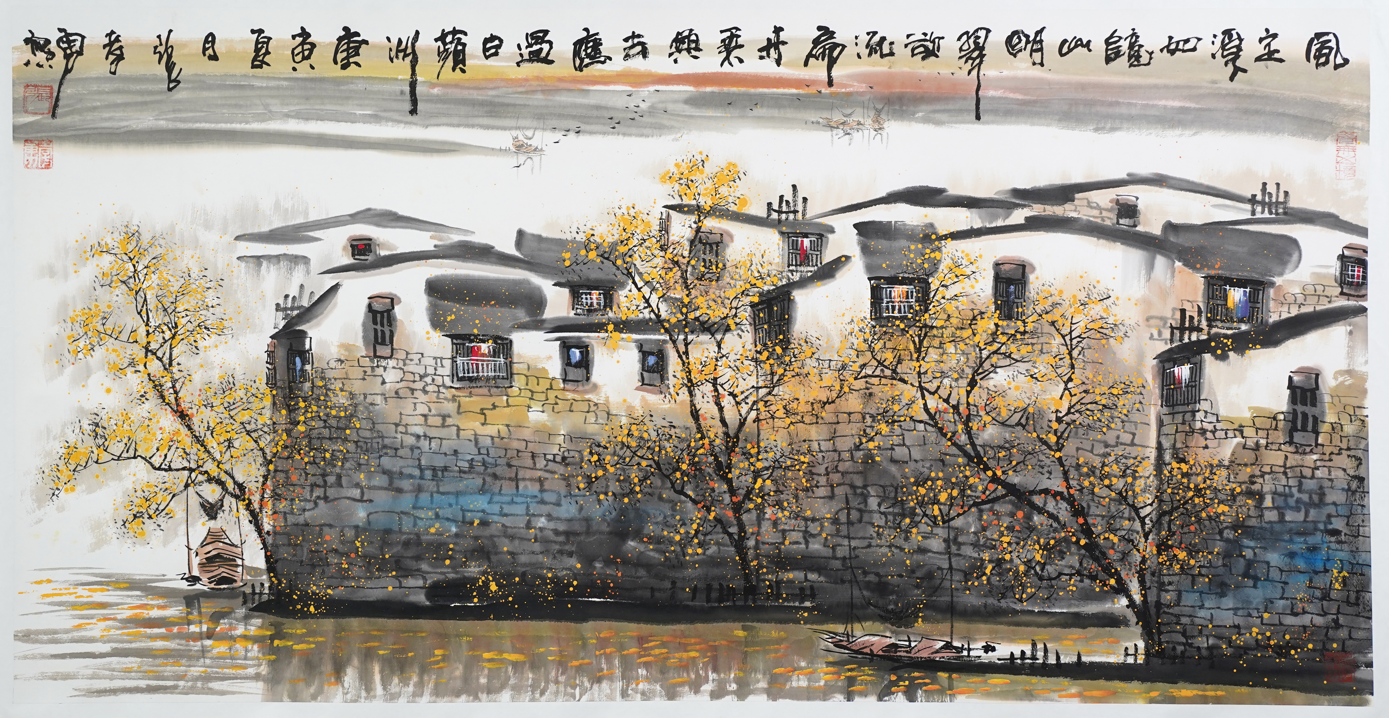 其笔下的江南水乡系列作品则基于张孝勇多年在江南的写生经验,将徽派建筑与水乡情境巧妙结合,洋溢着蓬勃生机和淋漓酣畅的意趣,且诗书画印相结合,意境悠远。