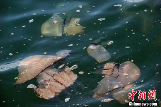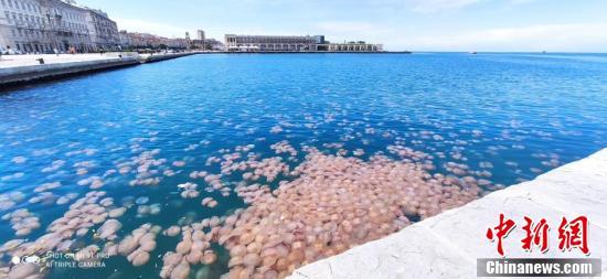 近日,意大利东北部的里雅斯特,当地海域闯入巨型桶水母。