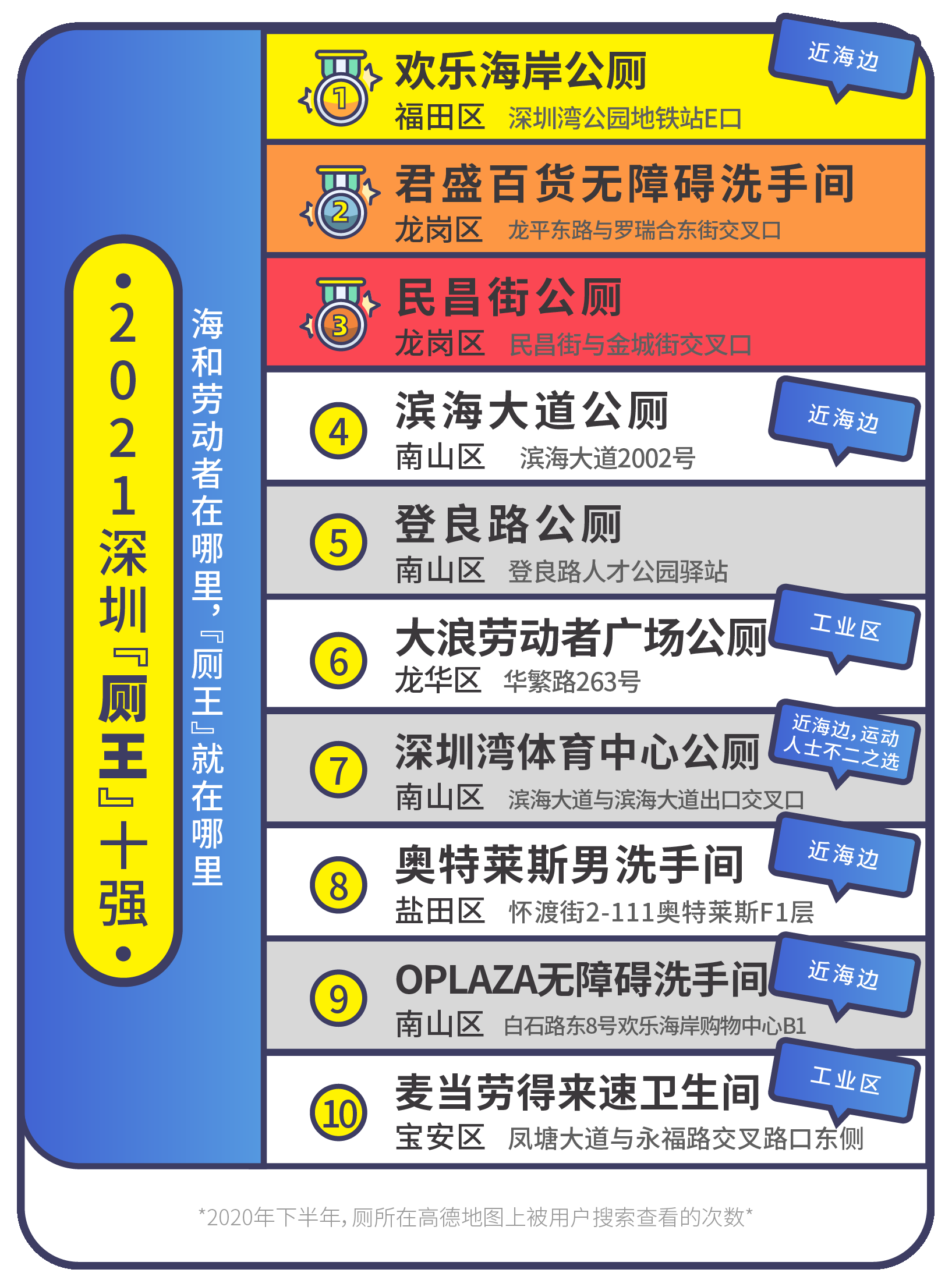 (原标题《高德地图<2021中国公共厕所图鉴>:深圳十大厕王出炉》)
