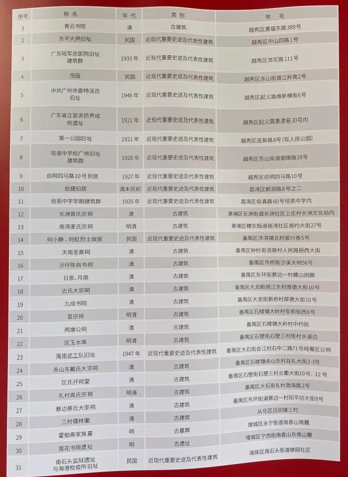 近日,第九批广州市文物保护单位名单新鲜出炉,古氏大宗祠、九成书院、显公祠、禺南武工队旧址等全市31处文物史迹入选,番禺以14处名列榜首。