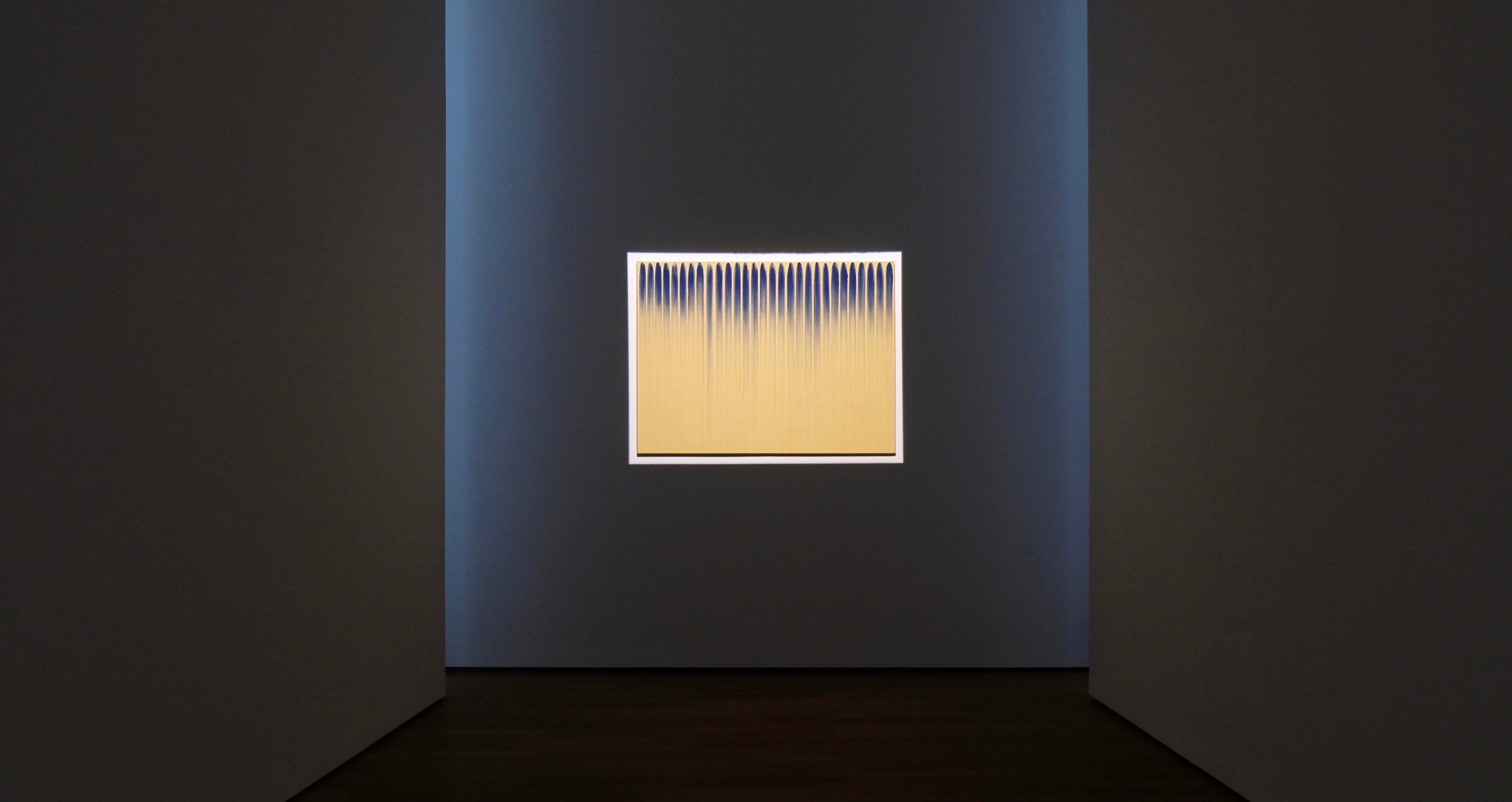 此外,白發一雄、 李禹煥、杉本博司等東方藝術家也是激發安藤忠雄藝術靈感的關鍵人物。他被白發一雄與吉原治良具體派的繪畫力量所震撼,設計了兩面弧形牆分隔且包裹它們,與作品表現的「圓」所呼應。他欣賞李禹煥批判西方美術,重視東方哲學思考的當代藝術實踐,用充滿縱深感的房間展現作品的「留白之美」。這幅畫是按照藝術家嚴謹的、儀式化的方式所構建的,只見二十九條藍線垂直排列在整個矩形畫布上,每個筆劃幾乎都延伸到畫布的整個高度,顏料厚度由深慢慢變淺。在作品中,可以看到藝術家對形而上哲學問題的思考。