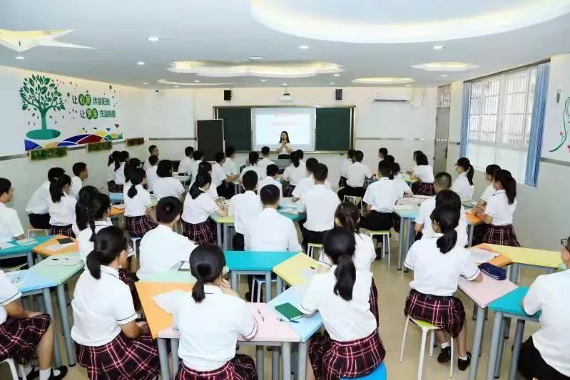 ↑广州市第四中学心理老师正在给学生上开学第一节心理课
