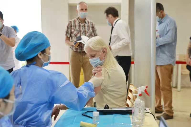在专业翻译的协助下,经过测量体温、出示绿码、身份核对等一系列手续后,预约好的外籍人士陆续顺利完成疫苗接种。来自法国的外籍人士表示,“接种后没有任何不适,医务人员也非常专业!”