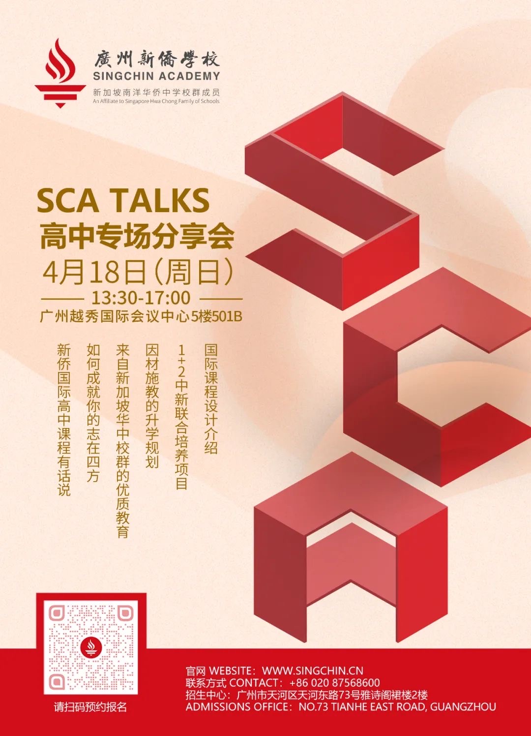为了解答上述疑问,新侨高中将举办《新侨高中如何成为你的核心竞争力》SCA TALKS分享会,诚邀您来聆听新侨高中的国际教育魅力,了解双语双轨双文化的核心竞争力。